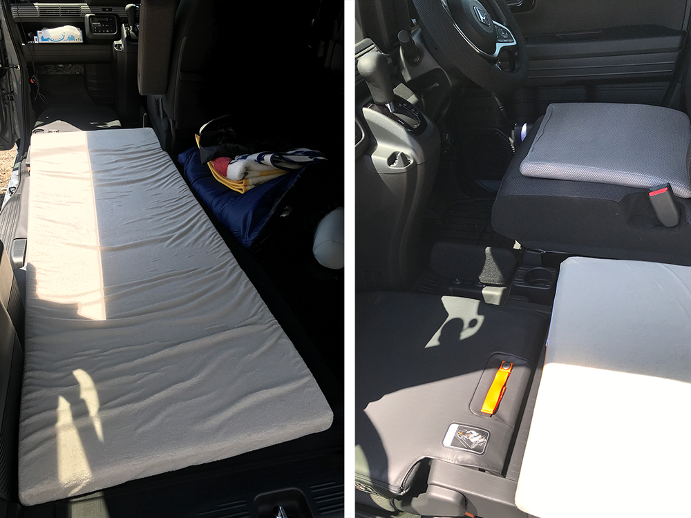 リアゲートちょい前から敷いてもドリンクホルダーの手前なんてN-VANは本当に広い。