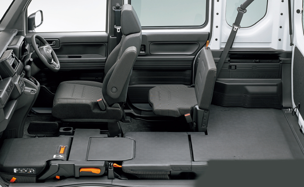 写真のように後部座席一つだけ起こして余裕で人と自転車運べます。